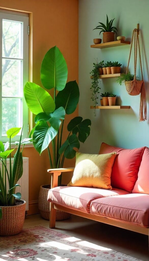 Earthy tones are the backbone of boho palettes. Colors like terracotta, olive green, mustard yellow, and rust create a grounded and calming atmosphere. Pair these with occasional pops of vibrant jewel tones, such as deep sapphire blue or emerald green, for a playful contrast. These shades work together to evoke warmth and energy in your living room.