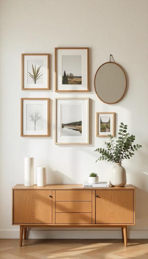 A gallery wall allows you to showcase your favorite memories and art. Mix and match framed art prints, personal photographs, and decorative mirrors. Choose a mix of frame styles and sizes for an eclectic look. This wall can become the centerpiece of your living room.