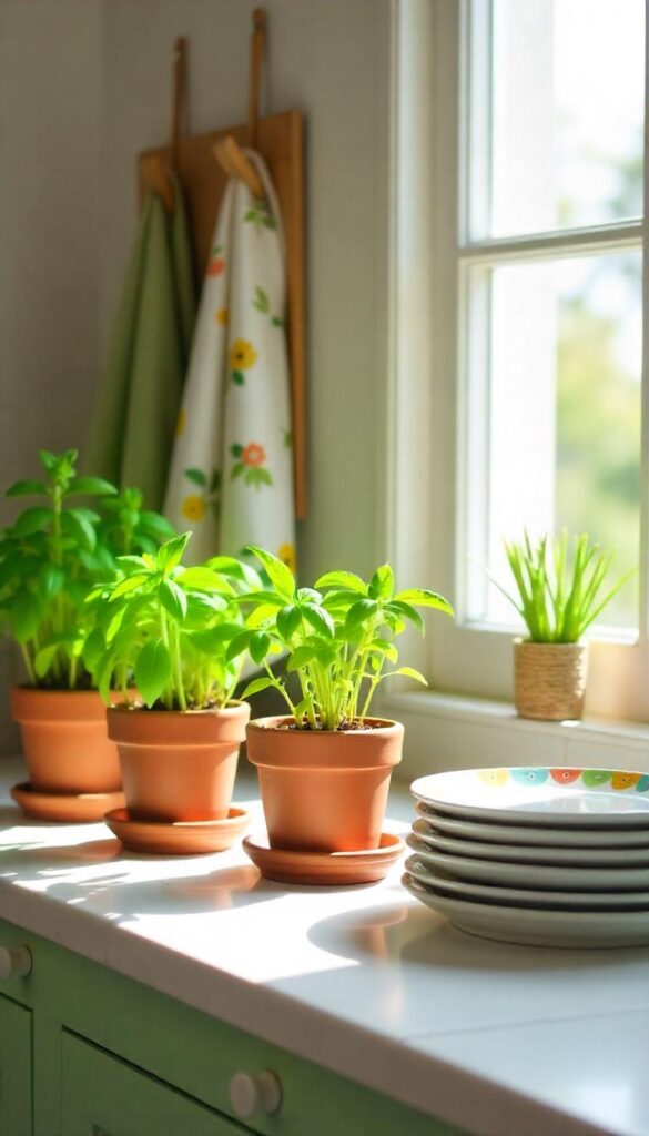 Herbs in small pots add freshness and utility. Mint, basil, and parsley thrive indoors. Display them on countertops or windowsills for a lively touch.