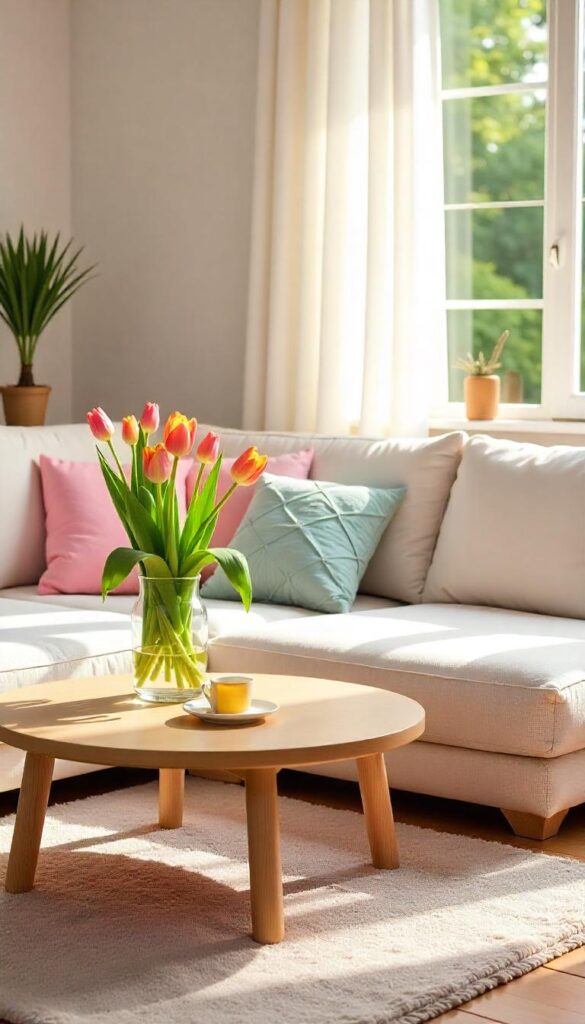 Nothing says spring like fresh flowers. Tulips, daffodils, and daisies bring a natural touch to your home. Arrange them in clear vases or colorful jars for added charm. A mix of wildflowers can create a rustic look.