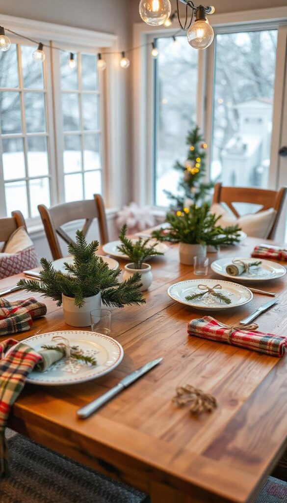 Celebrate winter at every meal with seasonal tableware. Look for plates, mugs, or napkins featuring snowflakes, pine trees, or winter animals. Even simple white dishes paired with plaid napkins can create a winter-themed dining experience.