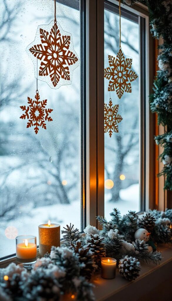 Snowflakes are a classic winter motif. Cut paper snowflakes to hang in windows or string them together for garlands. Snowflake-shaped ornaments or decals are another fun way to add this design element to your home.